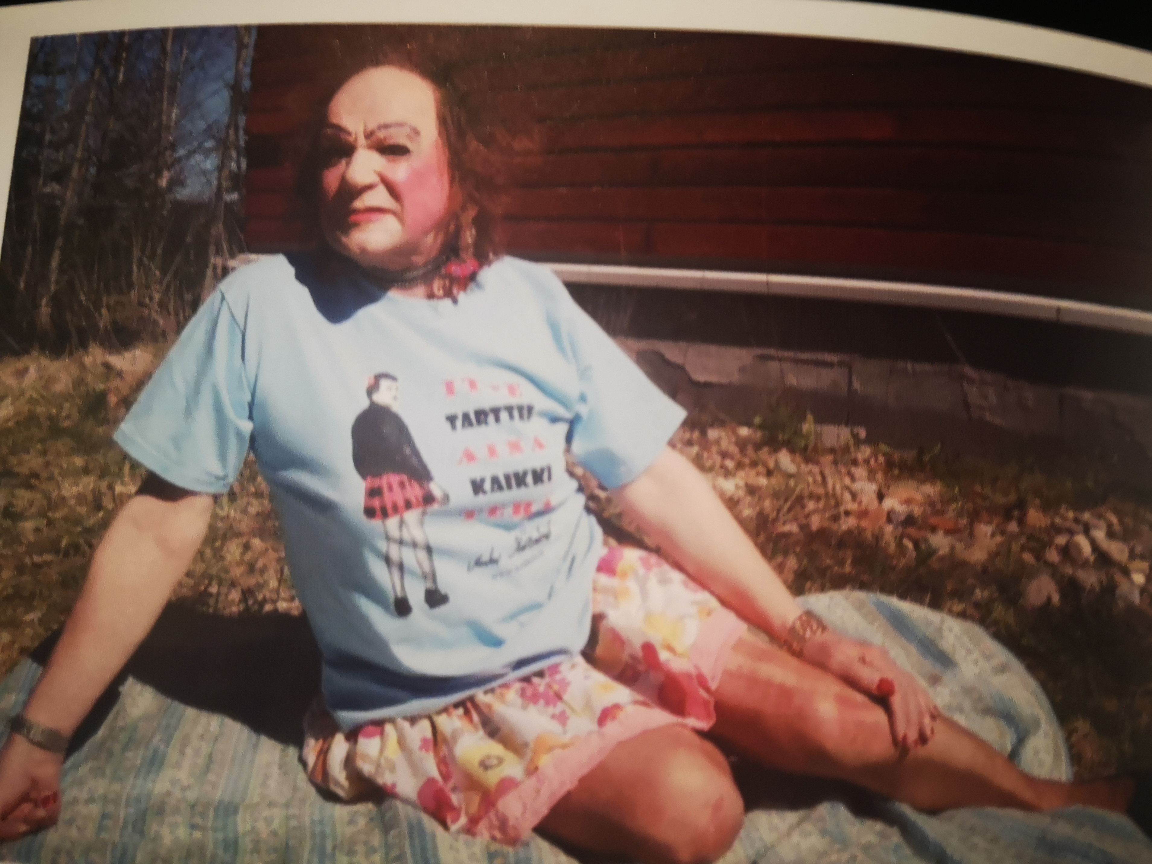 ”En yritä näyttää naiselta. Yritän näyttää mieheltä joka yrittää näyttää naiselta. Pitää olla mies, vaikka ois transsu! Siinähän se hauskuus onki! Sehän on ihan älytöntä hommaa, vaan mitä sitte, antaa olla rauhasa älytöntä! Omaksi iloksi minä pukkeudun. En miehiä varten, enkä naisia varten.”