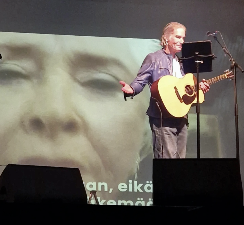 Riittää, että hän seisoo, soittaa ja kertoo tarinoita elämänsä varrelta ja yleisö on mukana jokaisessa sanassa.